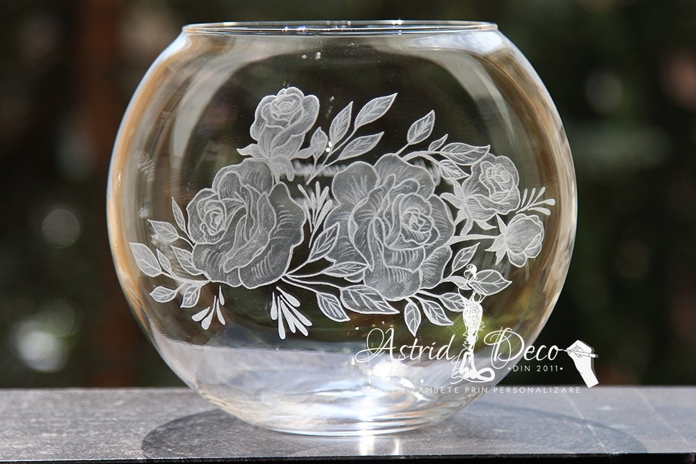 You're reviewing: Bol de sticla gravat manual -5 Trandafiri - 20cm