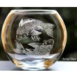 Bol de sticla gravat manual cu model 2 pesti pe o parte si text pe cealalta