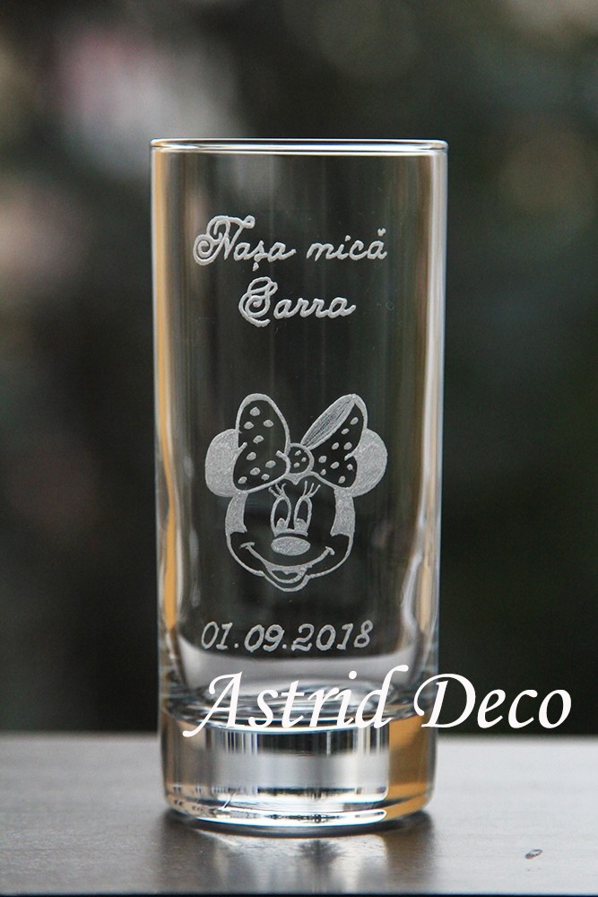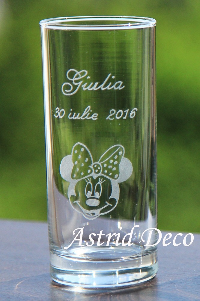 Pahar apa gravat manual- cap Minnie