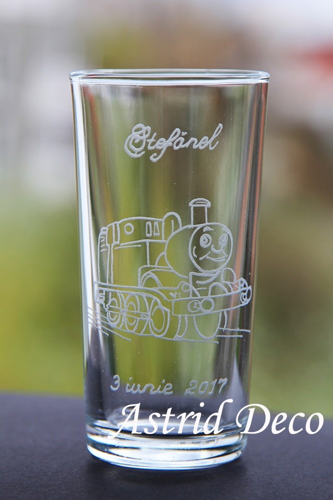 Pahar apa gravat manual- Locomotiva Thomas