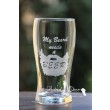 Pahar de sticla, pentru bere, gravat manual cu model barba si mesaj:
