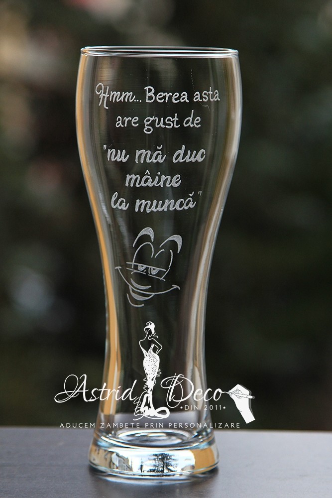 Pahar bere gravat manual- Maine nu merg la munca