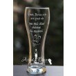 Pahar de sticla, de bere, gravat manual cu mesaj si un smiley face.