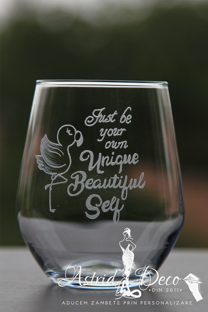 Pahar de sticla, gravat manual cu model si mesaj motivational :