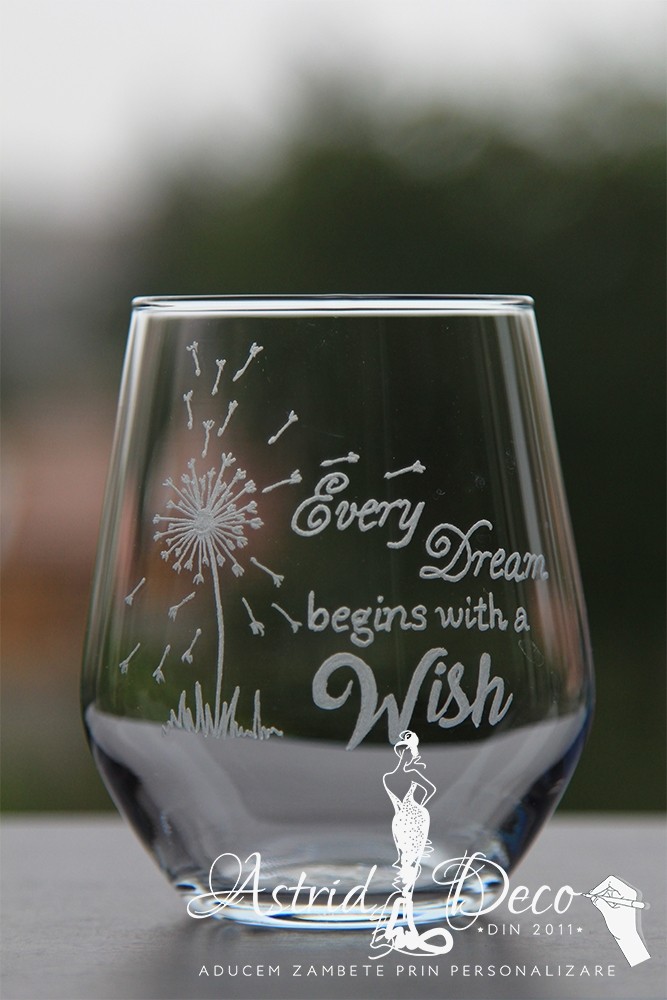 Pahar de sticla, gravat manual cu model si mesaj motivational :
