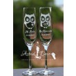 Set de 2 pahare Bohemia, gravate manual cu model bufnite, personalizate cu nume si data nuntii