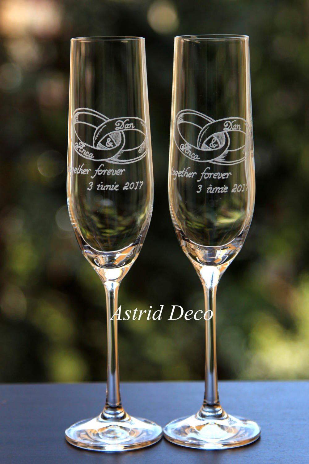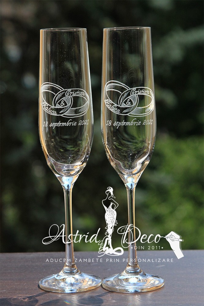 Set format din 2 Pahare Bohemia, de sampanie, gravate manual cu: