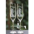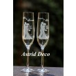 Set format din 2 pahare Bohemia, de sampanie, gravate manual, cu numele mirilor, model siluete si data nuntii