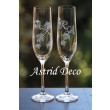 Set de 2 pahare sampanie, gravate manual, cu initialele mirilor si model frunze diferite dimensiuni