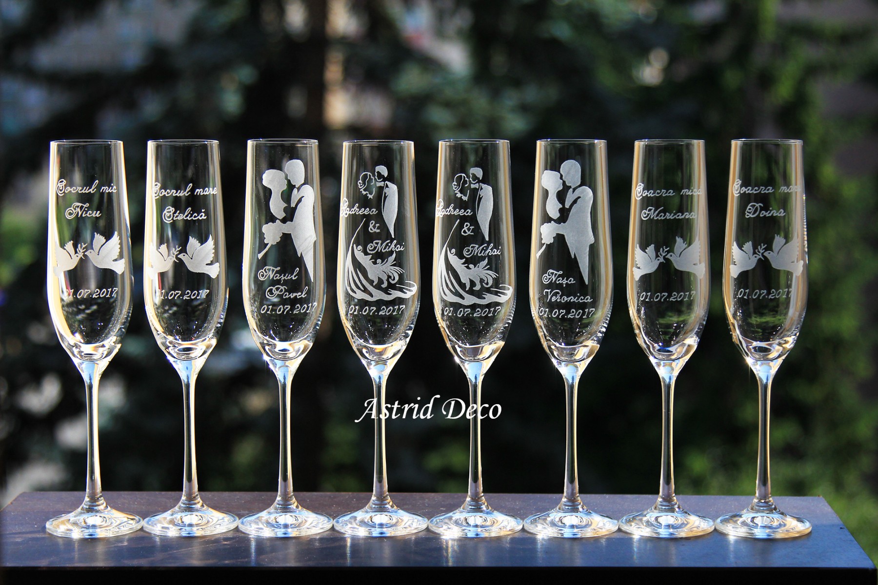 Set format din 8 Pahare Bohemia - miri, nasi si parinti - gravate manual