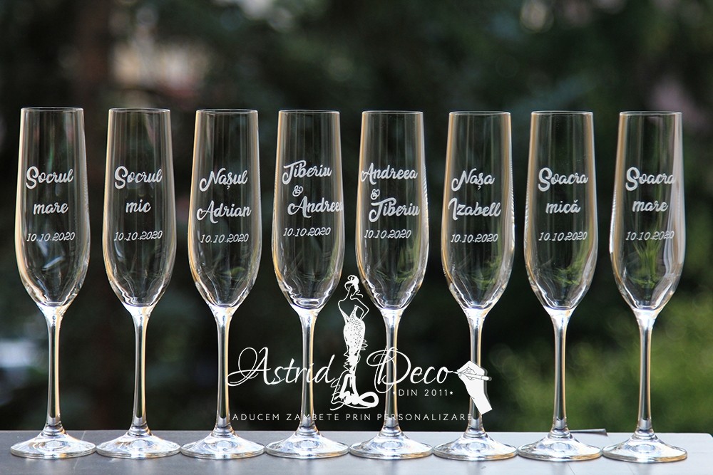 Set format din 8 Pahare de sampanie, Bohemia, personalizate :