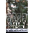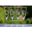 Pahare de sticla, sampanie, gravate manual cu text si model 2 inimi