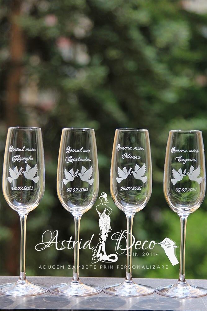 Pahare de sampanie, personalizate pentru parinti/ socrii cu: