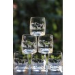 Set format din 6 pahare Bohemia, pentru whiskey, gravate manual cu model munti, brazi si un cerb